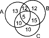 दिए गए वेन आरेख कॉलेज के छात्रों के समूह की खेल वरीयताओं का प्रतिनिधित्व करते हैं। तीन खेल हैं: A - बास्केटबॉल, B - फुटबॉल और C - वॉलीबॉल। आरेख के आधार पर, कितने छात्र केवल एक खेल खेलते हैं?