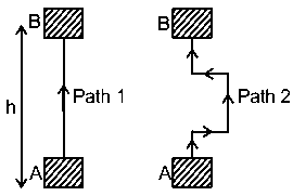 नीचे दिए गए आकृति में, यदि किसी वस्तु को A से B तक स्थांतरित किया जाता है (AB की ऊँचाई = h माने ), तो वस्तु पर किया गया कार्य किस स्थिति में mgh होता है?